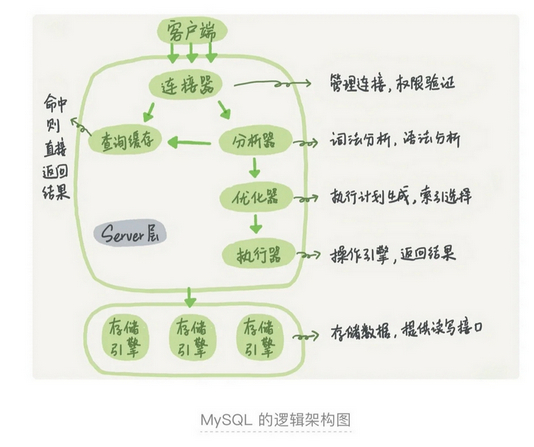 大体来说,MySQL 可以分为Server层和存储引擎层两部分。