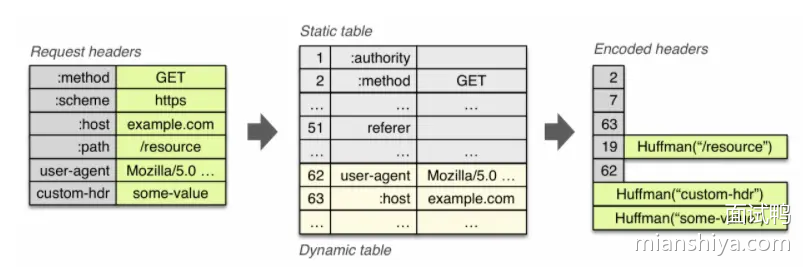 - 利用 HPACK 压缩头部,减少数据传输量。