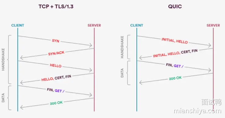 - 数据传输完成后,TCP 使用四次挥手(FIN、ACK、FIN、ACK)优雅地关闭连接,确保数据传输完成且资源被正确释放。