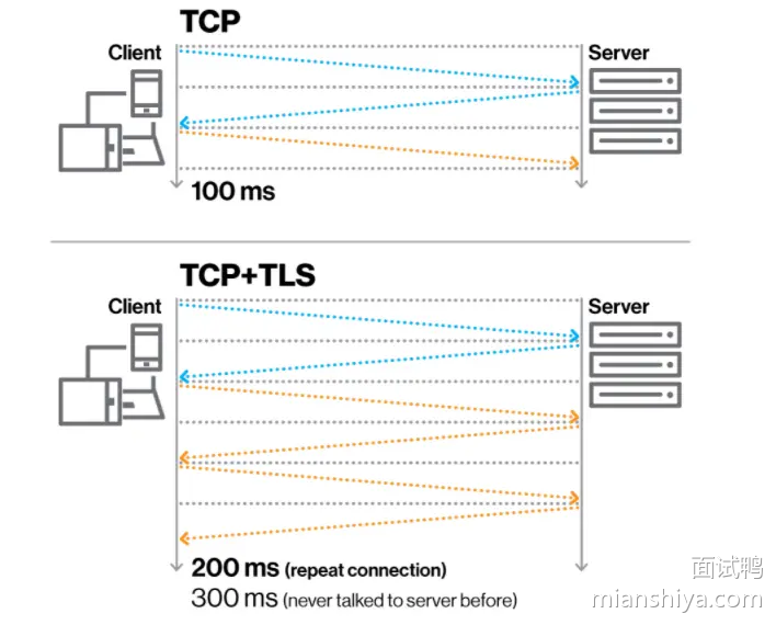 - 在数据传输之前,TCP 使用三次握手(SYN、SYN+ACK、ACK)确保双方都准备好通信。