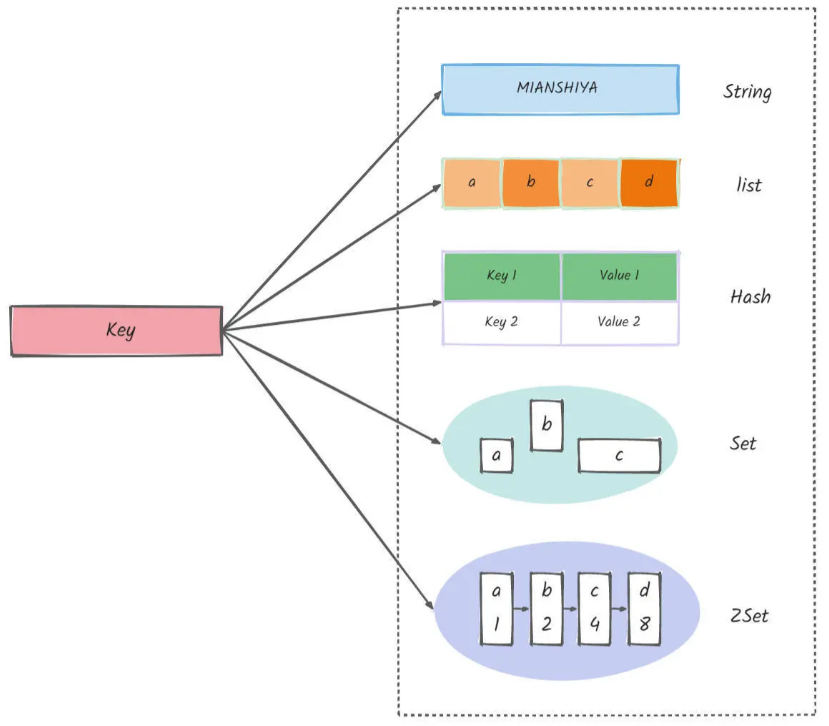 多样的数据类型:Redis 支持多种数据结构,包括字符串、哈希、列表、集合、有序集合等。