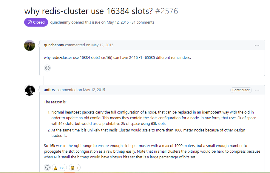 (1) 如果槽位为 65536,发送心跳信息的消息头达 8k,发送的心跳包过于庞大。